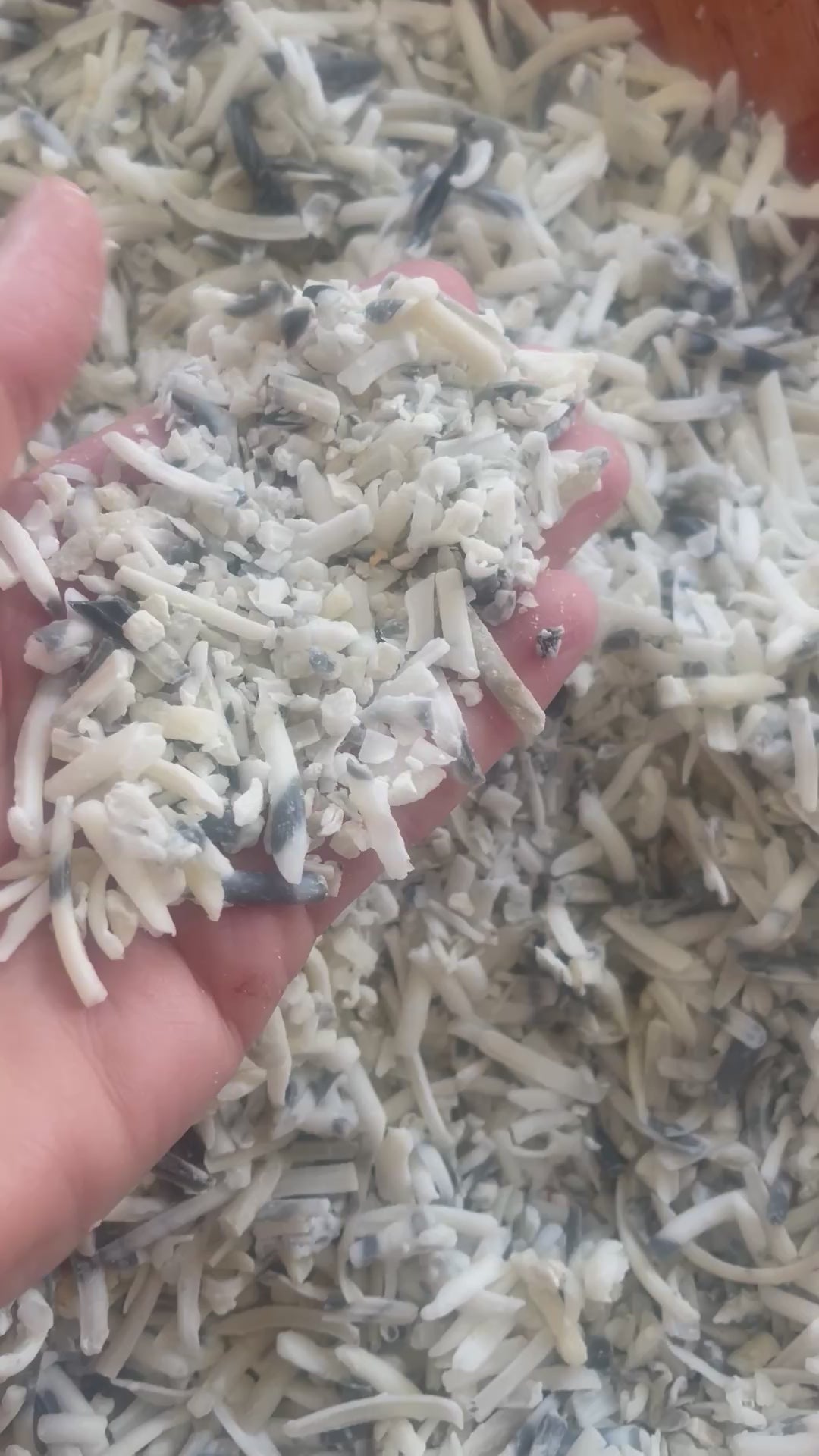 Huile végétale recyclée transformée en savon, soude (hydroxyde de sodium), terre de sommières, glycérine végétale, huile essentielle de lavandin bio, charbon actif